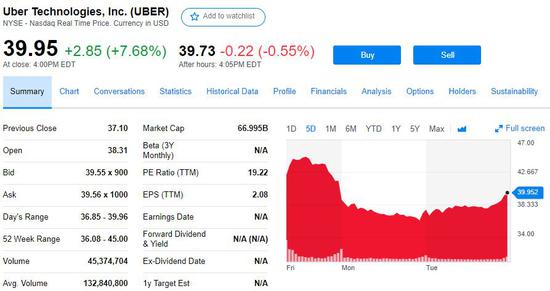 5月14日周二是Uber IPO上市后的第三个交易日,Uber收涨7.68%,收报39.95美元,仍较45美元的发行价下跌11.2%。前两个交易日Uber分别跌7.62%和10.75%,两日累跌17.56%,上市后盘中新低为36.08美元,较发行价下跌19.8%;Uber开盘价报42美元,开盘即破发。