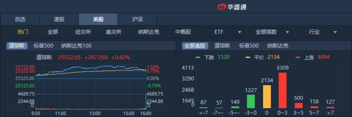 周二,美股反弹收复上日部分失地,标普500收涨22.54点,涨幅0.80%,报2834.41点;道指收涨207.06点,涨幅0.82%,报25532.05点;纳指收涨87.47点,涨幅1.14%,报7734.49点。