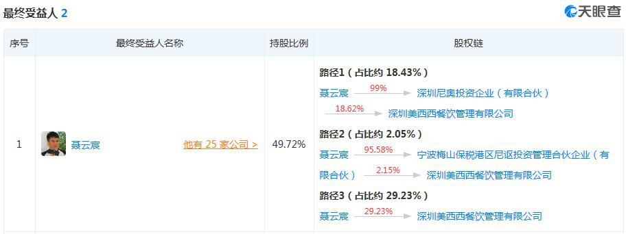 根据天眼查信息显示,创始人聂云宸持有喜茶29.23%的股份,另外,他还通过2家合伙企业持有喜茶逾20%的股份;这也就意味着,聂云宸持有喜茶约49.72%的股份。如果按照60亿元估值计算,聂云宸目前身价已达28亿元。