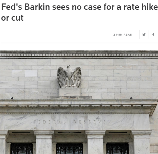 “在通胀得到控制的情况下,没有推高利率的充足理由;在经济保持健康增长的情况下,没有充足的理由下调利率。”里士满联邦储备银行行长托马斯-巴尔金(Thomas Barkin)在曼哈顿纽约商业经济学家协会(New York Association of Business Economists)准备发表的讲话中表示。