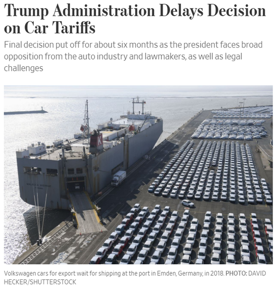 两名政府官员周三表示,特朗普政府将是否对汽车和汽车零部件进口征收全面关税的最终决定推迟了大约六个月。