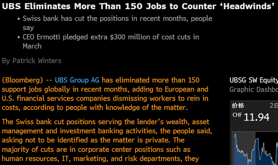 据知情人士透露,瑞银近几个月来在全球范围内裁掉150多名支持性部门员工,成为又一家为控制成本裁员的欧美金融服务公司。