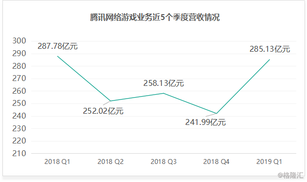 受2018年版号停发的影响,许多大厂新游戏上线时间纷纷延迟,在没有大量新游戏造血的情况下,腾讯的网络游戏营收增长乏力已是预料之中。据财报显示,期内网络游戏业务实现营收285.13亿元,与2018年Q1相比大致持平。