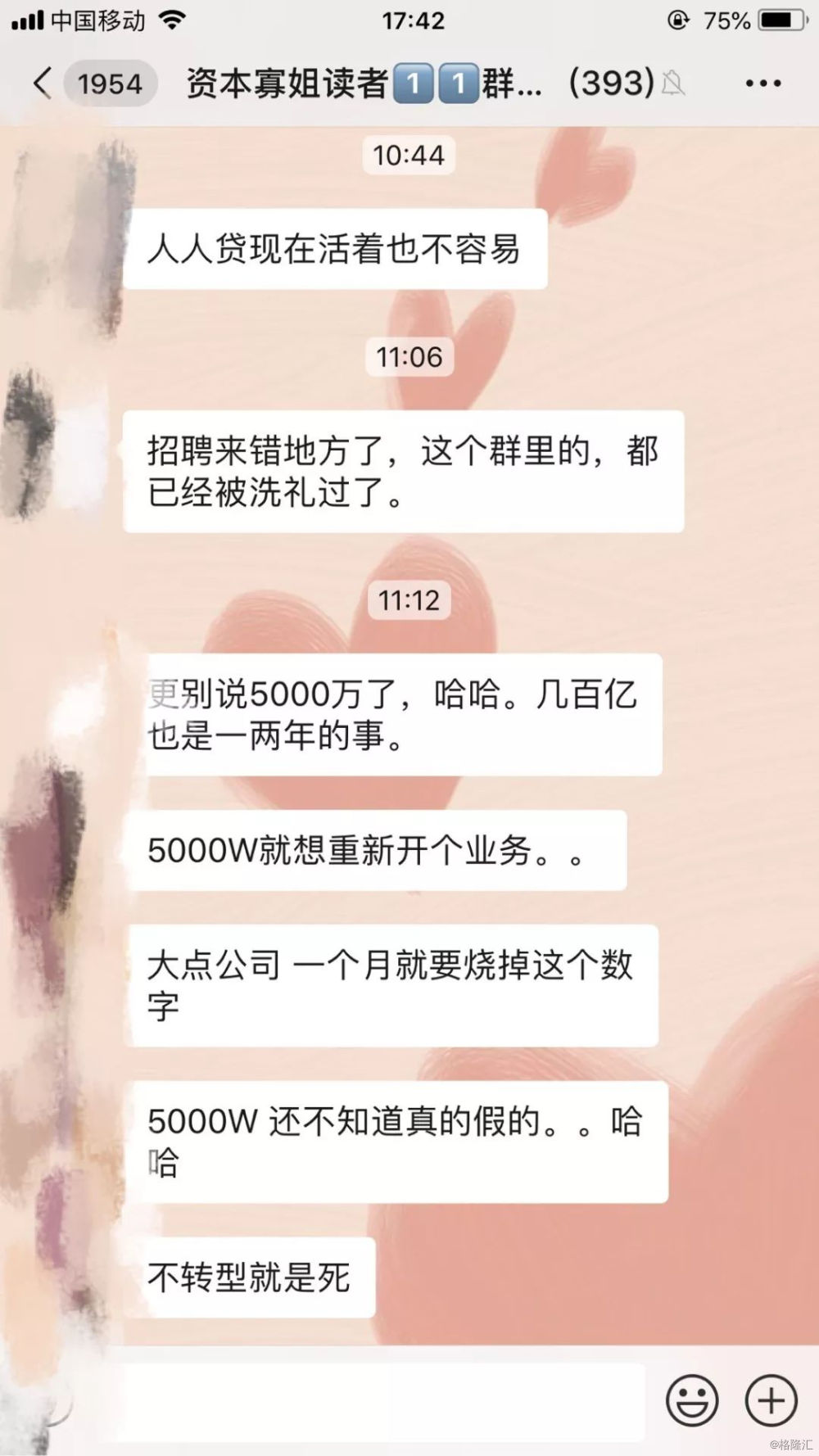 寡姐读者群里的评论很刺眼,但却异常真实。人人贷能活到现在,的确不容易。那些在资本市场中翻手为云覆手为雨的“弄潮儿”们,在中国经济合规化的滚滚车轮中逐渐成为了被牺牲的“代价”。