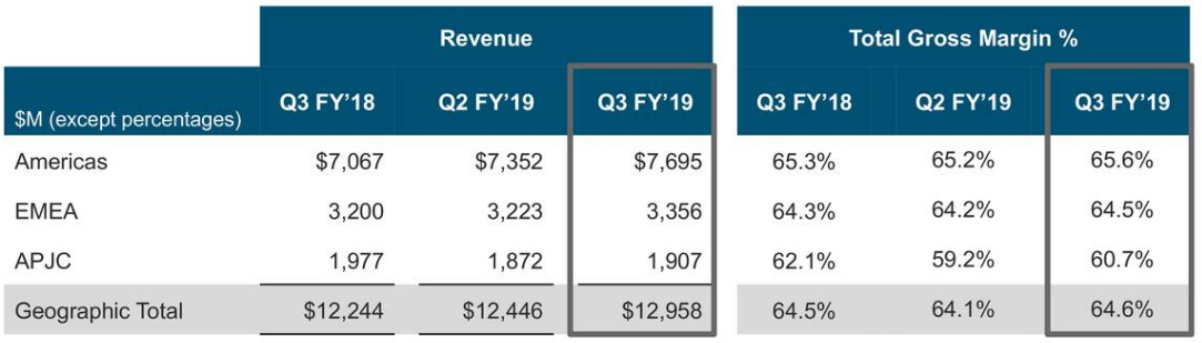 整体而言,调整后净营收同比增速达到6%,同时毛利率从上期的64.5%增至64.6%,基本平稳,反映出全球贸易冲突背景下,对冲亚太地区的消极影响,公司转型带来了不错的增长动力。
