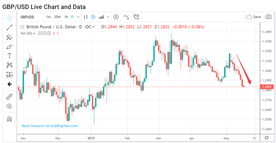 英镑在今年前四个月的表现超过了世界其他主流货币,是因为英国获得了延长脱欧的期限。但由于梅姨领导的英国政府在脱欧事务上迟迟未有进展,因此5月以来英镑贬损不少。