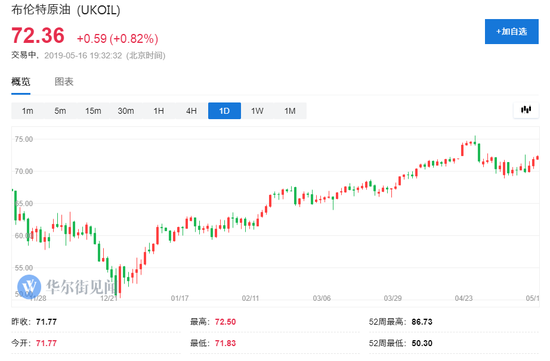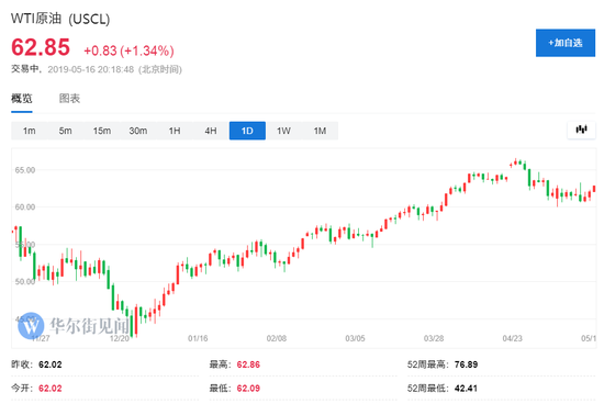 昨日,虽然美国能源信息署(EIA)原油库存意外大增543万桶,但由于中东波斯湾局势升级,国际油价依然录得连续3天上涨。截至北京时间5月16日19时,布伦特原油报72.36美元,上涨0.82%;WTI油价报62.85美元,上涨1.34%。