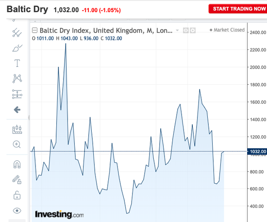 今年5月,作为国际大宗商品活跃度的晴雨表,低迷已久的波罗的海干散货指数重新站上1000的关口。在经历了五连涨后,今日,波罗的海干散货指数下跌1.05%,至1032点。