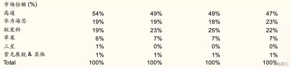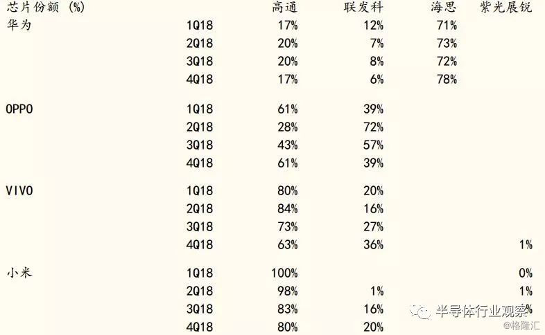图2:四家芯片在各品牌手机份额的变化(来源:国金证券)