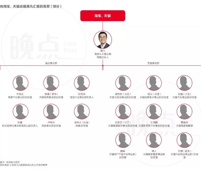 目前直接向蒋凡汇报的包括淘宝事业群和天猫事业群两大团队,据《财经》记者不完全统计,直接向蒋凡汇报的人数至少超过15位。