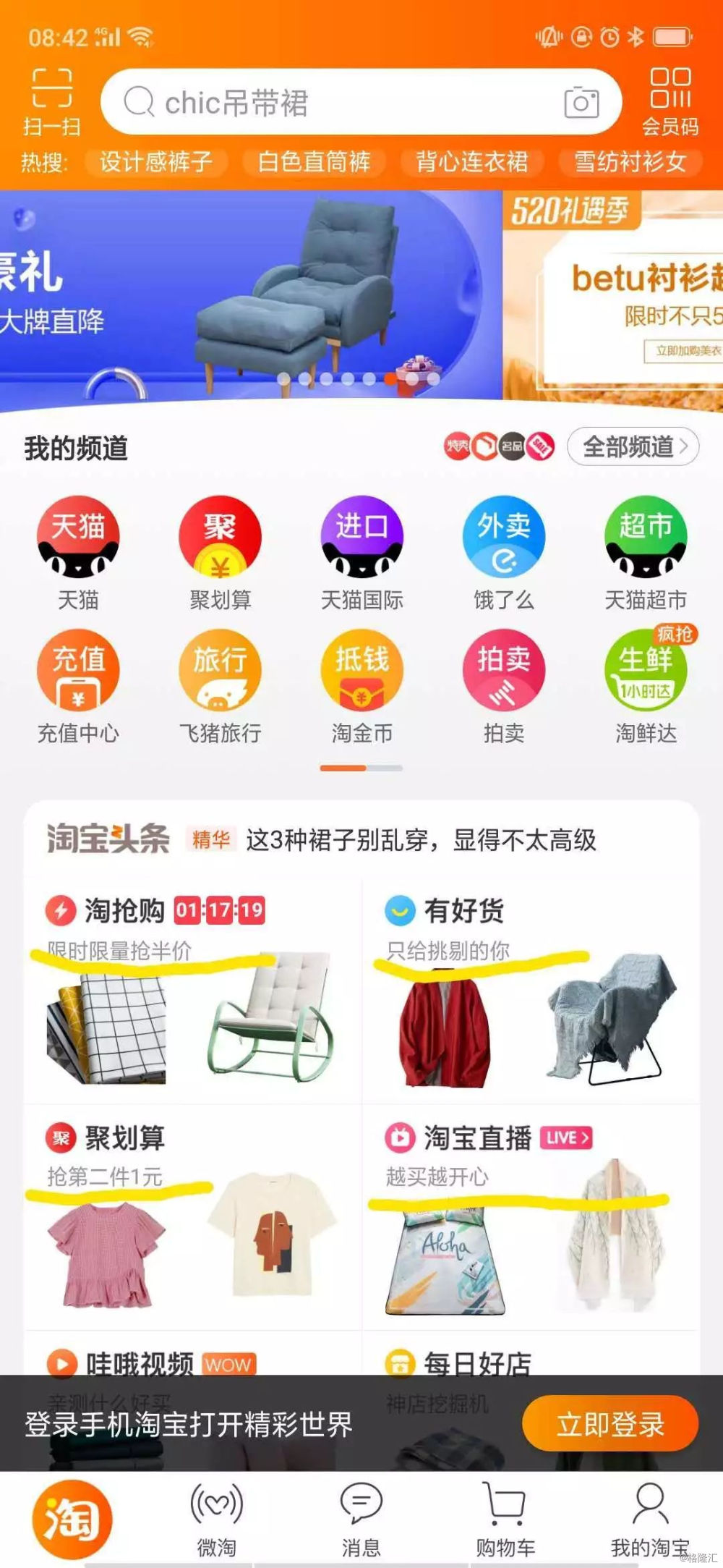手淘页面,聚划算、天天特卖、淘抢购、直播等针对价格敏感型用户的入口非常显眼