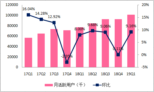 用户方面,月活跃用户1.01亿同比增长31%环比增长9%。同时,月付费用户单季净增130万达到570万,是18Q1以来的最快增速。另一方面相应的社区也在高速发展, UP主数量及内容上传量的增长均超过三位数,动态功能推出后一季度用户月交互量超过11亿次,同比增长260%。B站仍然能够持续吸引用户,并正在非常成功地由一个弹幕网站,逐步转化成一个社区平台。