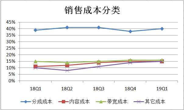 当前对B站能够实现全年盈利的时间点可能要推迟到2020年之后,19Q1毛利率14%,与公司目标40%的毛利率水平尚存差距。包括分成成本,内容成本在内的一系列成本较为固定,使得B站持续处于亏损状态,以分成成本为例,类似于FGO这样的独家代理游戏分成比例为45%,而在经历了长达2年以上的合作后,这个比例不太可能会有大幅调整。此外包括从UP主分成到直播分成在内大量分成比例的调整空间皆有限。各项成本相对固定最终导致了营收不断增长的同时亏损也在持续扩大的这一结果。