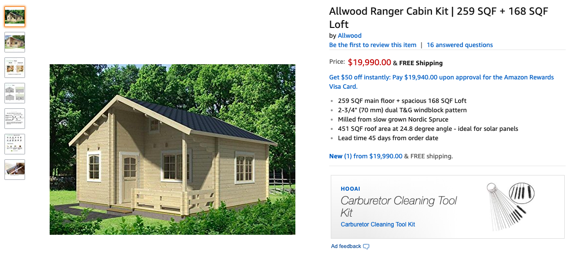 亚马逊对于这种迷你屋的描述是“绝佳的家用办公室或是客房”。根据亚马逊的描述,小屋组装好之后大小约172平方英尺,由于面积较小,里面没有厕所浴室。