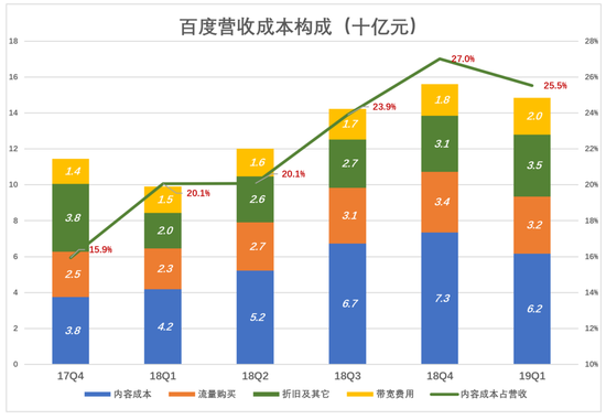 造成百度毛利润率下降的直观因素是内容成本暴涨。