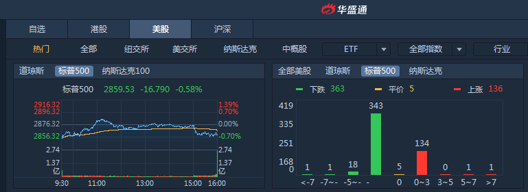 上周五,受特朗普出口制裁名单影响,美股三大股指普跌。标普500跌0.58%,报2859.53点;纳指跌1.04%,报7816.285点;道指跌0.38%,报25764点。