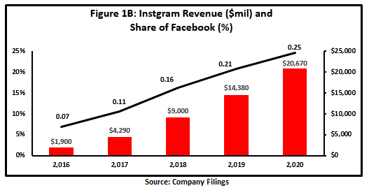 目前作为Facebook的旗下平台,Instagram显然拥有来自Facebook的协同效益和接近垄断的地位,其增速甚至比核心平台Facebook更快,当前高达1000亿美元的估值就是证明。