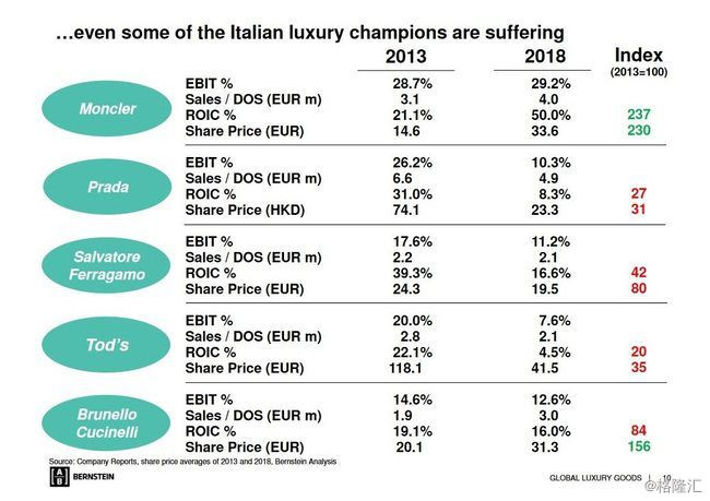 一系列意大利奢侈品牌的投资回报 - Bernstein