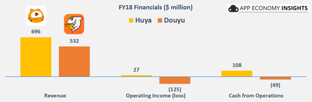 运营利润:虎牙已经实现盈利,去年运营利润2700万美元,而斗鱼同期则产生1.25亿美元的重大经营亏损。