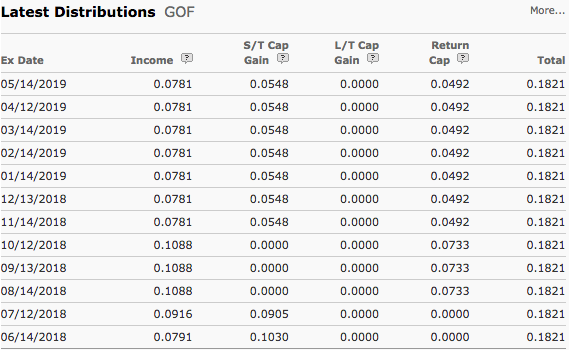 Note that last months’ consistent return of capital for GOF raises some concerns about the sustainability of its current distribution rate, even if the enduring 10%+ premium seems to demonstrate the market’s faith in its management.