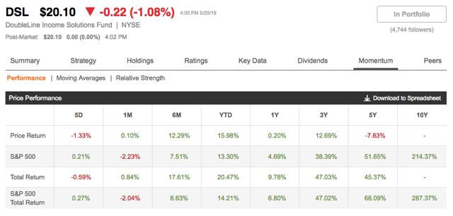 Momentum data makes it possible for investors to compare the Total Return for each closed-end fund versus the S&P 500 Index over three, five, and ten years.