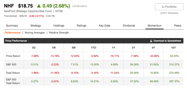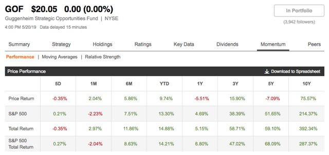 In addition, GOF and PTY beat the S&P 500 Total Return over the last ten years, while NHF is almost on par.