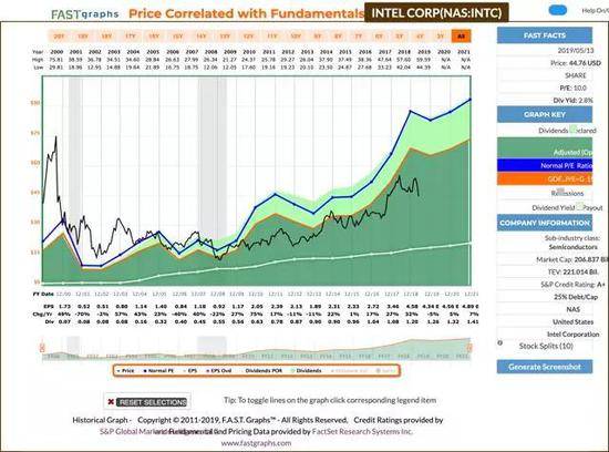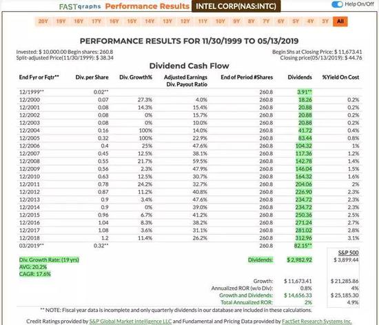 INTC不仅股价看起来很便宜,而且股息率高达2.7%。现在,从股息增长寿命的角度来看,INTC并不是超级明星。该公司的年度股息增长只有5年。虽然这不是因为削减,而是几年前的冻结。如下F.A.S.T.图形图表中可以看出,尽管intel可能不会每年提高股息,它是相当慷慨的支付,从长远来看,他们向上趋势强劲势头如图所示的股息增长17.6% CAGR公司已经发布在过去19年。INTC连续21年不间断分红。同样值得注意的是,按照预期每股收益计算,该公司股票的派息率仅为29%。该公司维持A+标准普尔信用评级,这也指向安全。考虑到这一切,我很高兴拥有这支股票,因为我相信,从长远来看,它将为我的被动收入流带来可靠的股息增长。