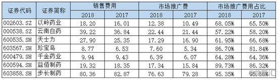 此外,步长制药给出的对比公司的市场推广费口径已全部统一,均包括了广告宣传费、差旅费(不包括运输费)及市场维护费。从整理数据来看,步长制药的市场推广费最高。