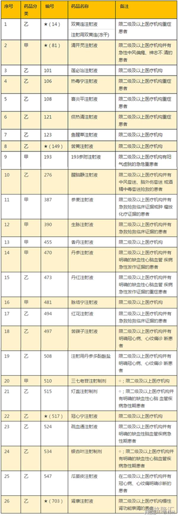 2017年2月23日,人社部正式印发《2017版国家医保目录》,并指出,包括鱼腥草在内的 26 种中药注射剂限二级及以上医疗机构使用。其中丹红注射液名列其中,具体名单如下: