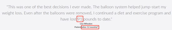 官网显示,依靠使用它们家的减肥球囊,有病人在6个月后减掉了39.6磅,12个月减掉了91磅。