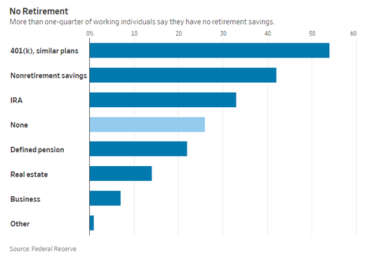 调查显示,美国四分之一的上班族说他们根本没有退休储蓄,44%的人担忧他们的储蓄没有走上正轨。在18岁至29岁的年轻员工中,42%的人没有任何存款,只有26%的人认为他们已经为退休做好了充分准备。