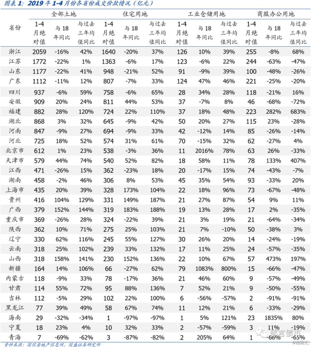 2019年1-4月,各省市土地出让价款对19年债务的保障力度如何?