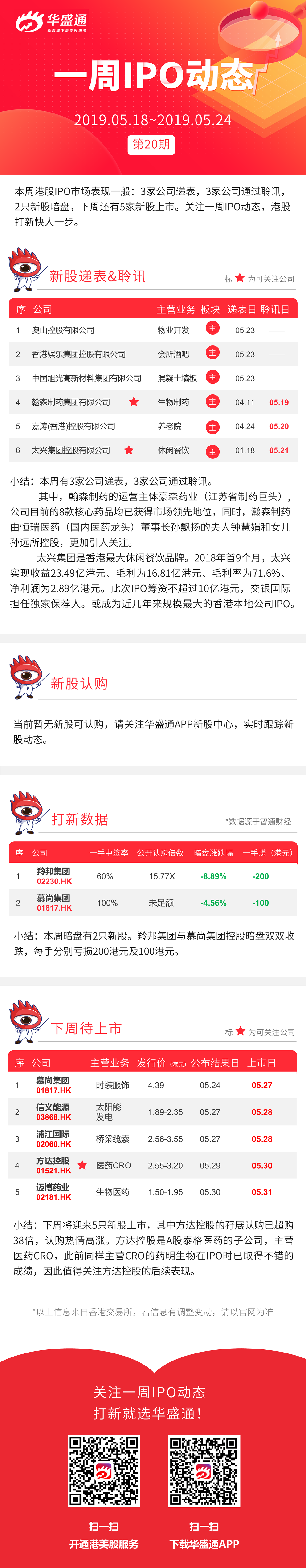 一周IPO动态丨慕尚暗盘每手蚀100,方达控股下周上市
