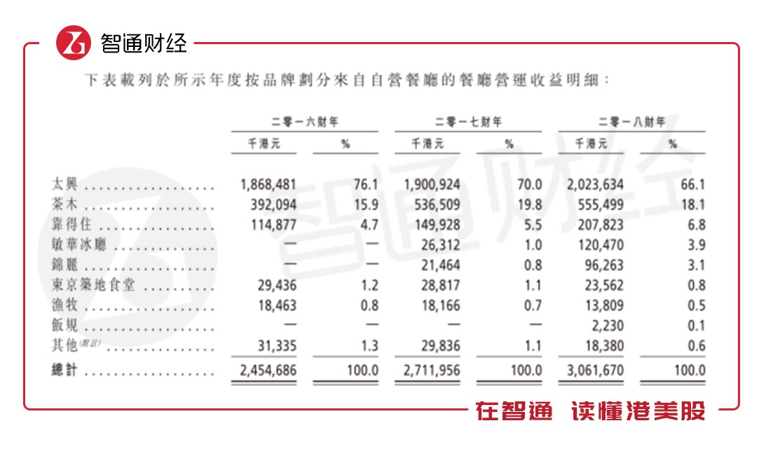 除此之外,太兴也面临人工成本和租金越来越高的问题。2016-2018财年间,公司员工成本占总收益比重分别为29.6%、31.0%及33.1%;租金及相关开支也由13.7%、14.4%,上涨至14.5%。两者均对公司的业绩增长形成越来越大的压力。