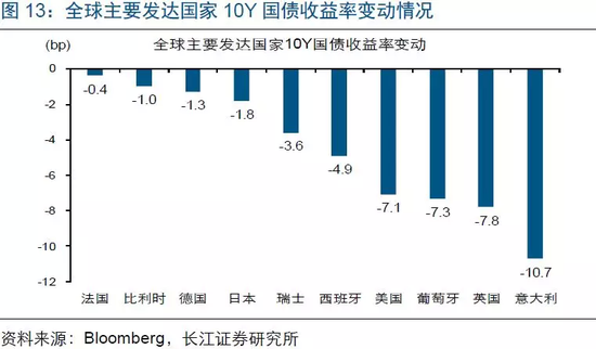 全球债市:长端国债收益率普遍回落。10Y美债收益率下行7bp至2.32%,10Y英债、德债、法债收益率分别下行7.8bp、1.3bp、0.4bp至0.96%、-0.1%、0.3%。