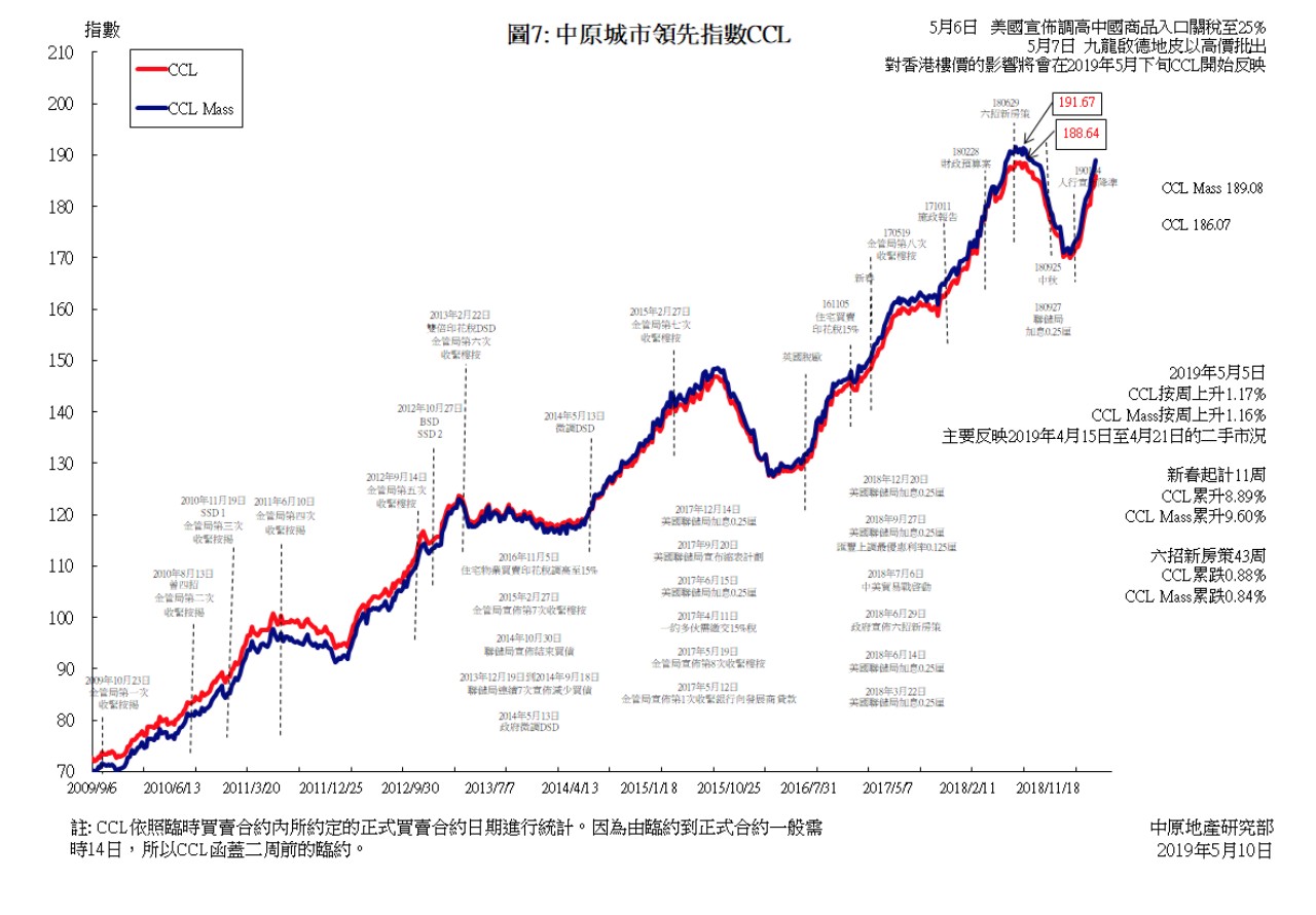 根据中原地产近期公布的香港CCL领先指标数据,自2019年初以来,截至5月5日,香港房价已累计上涨6.63%,且逼近2018年8月时CCL指数的高位188.64。