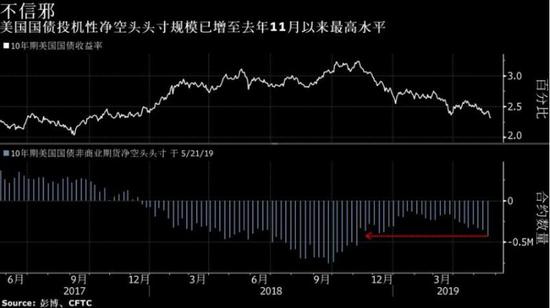 过去九周中,净空头规模仅有一周减少,尽管贸易摩擦加大了全球经济增速减缓的风险,并因此而推动避险资产走高,但美国国债的净空头依然还是有增无减。