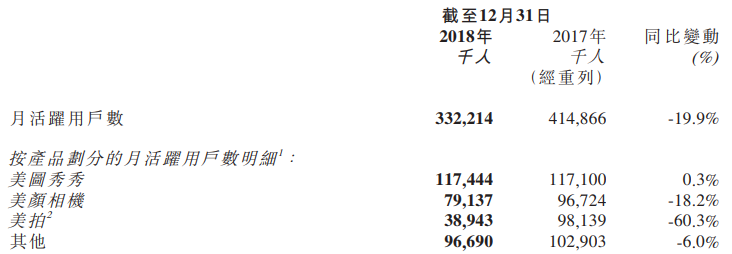 曾经风靡一时的“自拍神器”美图手机,作为美图公司的核心产品之一,一直是美图公司的主要营收来源。但由于买点单一,受众范围小,2018年美图智能硬件设备营收大幅下滑,亏损达 5 亿元人民币,严重拖累公司业绩。