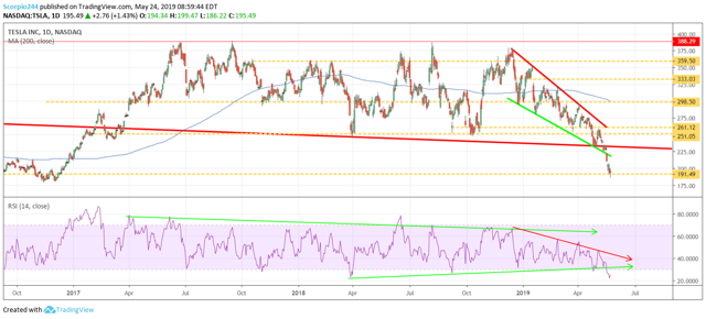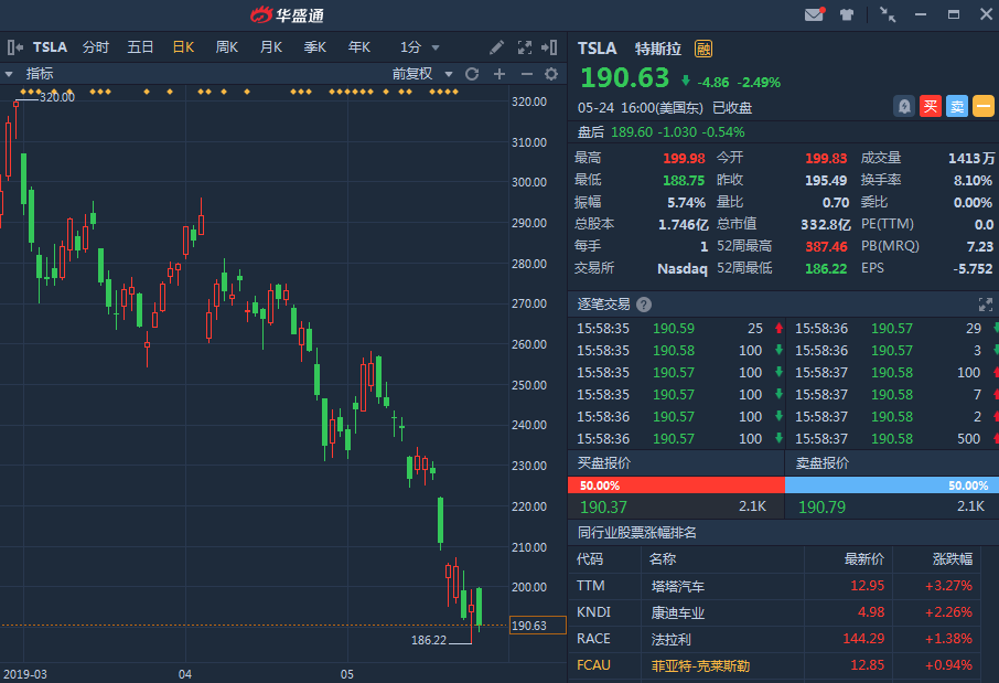 近期,特斯拉(TSLA)不仅深陷多起自动驾驶车祸及电池起火事故,管理层还表示公司面临现金流压力,现金流只能维持10个月,因此决定再紧缩开支。与此同时,大摩小摩等投行分别下调公司目标价。受消息影响,公司股价急速下跌,股价跌破200美元,上周五收跌2.49%至190.63美元。尽管如此,笔者获得的几项数据显示,大跌后的特斯拉仍有潜在利好。
