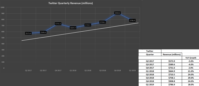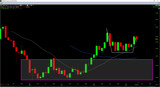 虽然负面新闻缠身,川普“执政”的推特(TWTR)交出了不错的季报业绩,股价表现大幅超过市场表现,自2018年年底的低点一路反弹,涨幅超过30%,远优于同期的标普500的表现(+12%)。