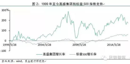 然而,上市后高盛合伙人制度并未消失,在公司制的治理架构下,高盛合伙人仍然发挥着作用,在高盛集团内部,二者实现了完美的结合。伴随上市带来的资本金增加,高盛多元化业务发展迈向新的台阶,除传统投行和交易业务之外,资本金投资和资产管理两大业务获得快速发展,主要业务之间变得更加均衡。适应投资银行业的转型升级,高盛集团逐渐从一家传统的投资银行演变为专注投行业务的现代金融集团,核心竞争力进一步增强,成为5大投行中具有最强盈利能力的一家。虽然遭受金融危机的重创,并且于2008年被美联储批准其成为银行控股公司,但并不妨碍其作为近20年来五大投行中唯一一家仍然健在并且成功跑赢大市的投行类金融机构。