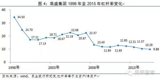 主动去杠杆。为满足巴塞尔协议III等外部监管的要求,控制经营风险,以美国投行为代表的金融机构都纷纷加速去杠杆,境外投行的经营杠杆都从危机前约30倍的水平下降至2015年约10倍左右的水平,其中高盛的杠杆比例从2007年高峰时期的26.2倍下降至2015年约10.3倍的水平。全美证券经营机构的杠杆比例从2007年高峰时期的38倍下降至2015年约18倍左右的水平。由于监管发生了变化,高盛需要更多资金,以实现去杠杆化。从下图可以看出,高盛通过内源积累和外源补充,资本金实力得以提升,“去杠杆化”成效显著。