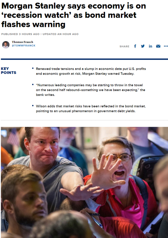 摩根士丹利周二警告称,贸易关系再度紧张,经济数据下滑,从耐用品和资本支出下滑到服务业放缓,都令美国利润和经济增长面临风险。
