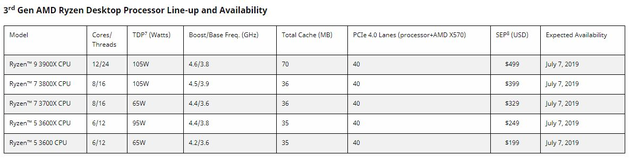 在7月7日即将上市的五款最新台式机CPU中,锐龙9系列处理器Ryzen 9 3900X将是该公司历史上首款12核/24线程的旗舰型处理器,继续推动高性能socket AM4平台架构。AMD还完善了8核的锐龙7系列和6核的锐龙5系列产品,售价从199到499美元不等。