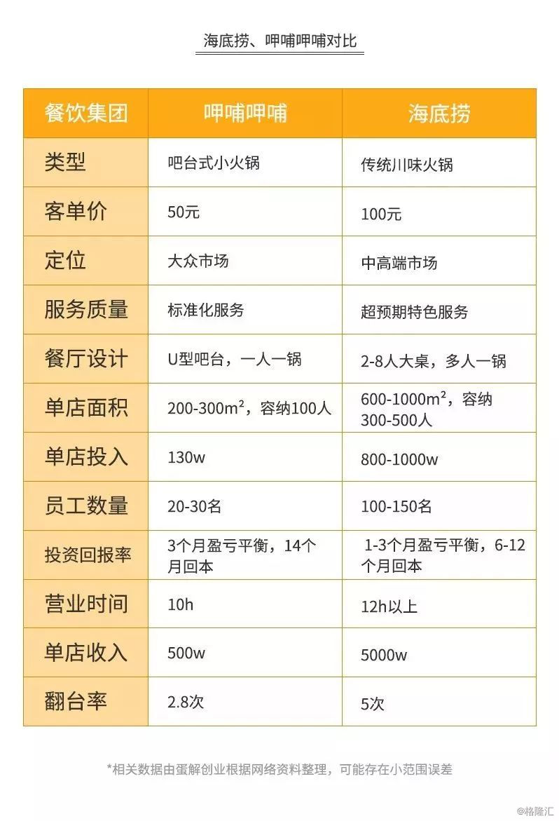这意味着火锅门店天然具有连锁基因,所以我们看到了海底捞、呷哺呷哺,但同时,也意味着进入门槛低,核心壁垒需要长期打造并且需要世时机。