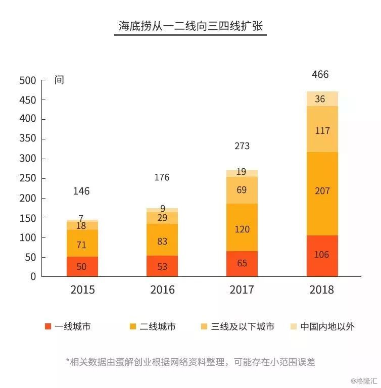 而门店扩张的重点就是二三线城市,2018年二三线城市新增135家门店,占海底捞全年新增门店的67.5%。