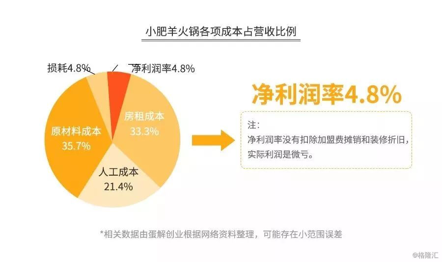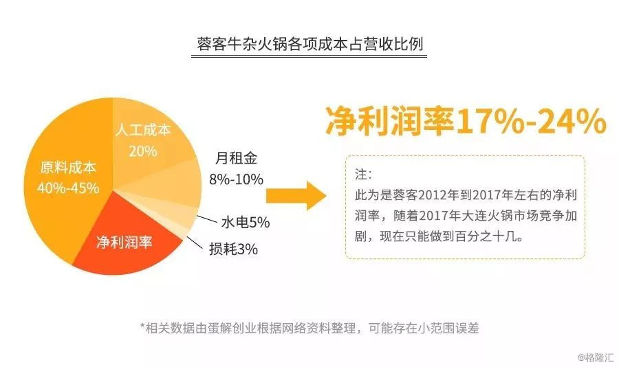 就单人开店来看,火锅店比蛋解创业之前测评的茶饮、咖啡、宠物行业的盈利能力似乎更好一些。优秀火锅店1—3个月就能达到单月盈平衡,6—12个月收回投资成本。由于供给端易复制,底料、蘸料、菜品都可以快速供应,不需要多少技术含量,所以门槛很低、也易于快速拓店。