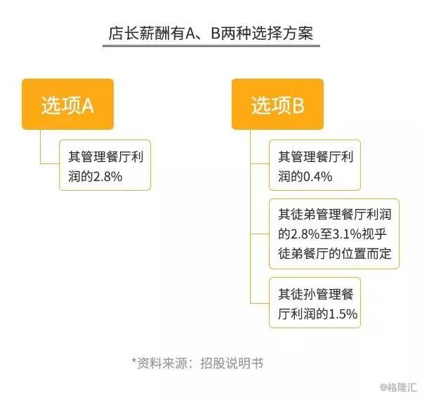 4、师徒制,师傅所在门店为小组组长,各门店的绩效与小组内其他门店挂钩。对徒弟的考核也与师傅的门店挂钩,徒弟能不能开新店或成为店长,都会影响师傅的绩效。店长收入与火锅店的利润挂钩,按月营收500万,净利润9.7%的店来算,按选项A的薪酬制度,店长一个月薪酬达到1.3万。如果按选项B来算,分成比例高得多,所以这种制度下店长也会积极发展徒弟。