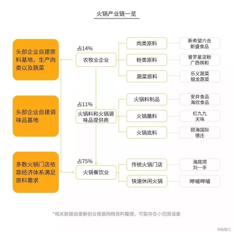 就像文章一开头写到的,一方面火锅的产业链短而清晰成熟,上游食材畜牧业、中游火锅调味料、底料提供商和下游火锅餐饮;另一方面,火锅容易标准化且自由度高,普通中餐对于火候和调料的拿捏没有明确的说明,需要厨师自行控制,因此很难标准化,而火锅消费者自行选购食材、配置蘸料并且自己涮煮食物。