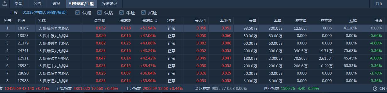 智通财经APP获悉,中国人保(01339)A股午后直线封板,封单达52万手,H股亦跟随上涨,截至发稿,涨5.44%,报3.1港元,成交额达9903万港元。